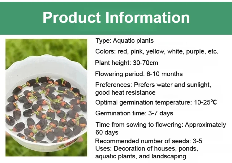 Οι σπόροι λωτού μας είναι εξαιρετικά ευπροσάρμοστοι και μπορούν να ευδοκιμήσουν σχεδόν σε οποιοδήποτε περιβάλλον, είτε σε εσωτερικό είτε σε εξωτερικό χώρο. Από ενυδρεία και λίμνες με koi μέχρι απλά βάζα και γλάστρες – αρκεί να έχουν πρόσβαση σε άφθονο νερό, αυτοί οι σπόροι θα ανθίσουν όμορφα.